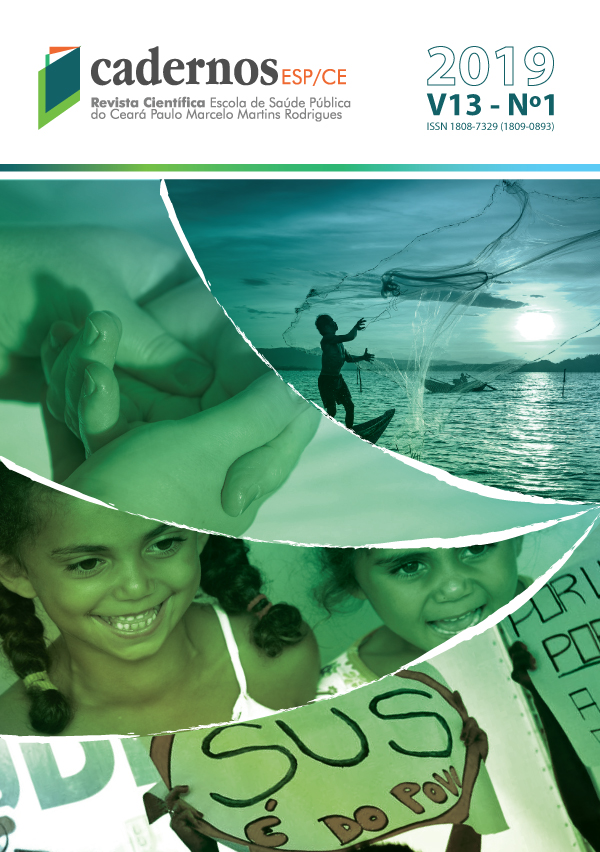 v. 12 n. 2 (2018)Apresentamos nesta edição da CADERNOSESP - Revista Científica da Escola de Saúde Pública do Ceará resultados da produção do conhecimento em saúde coletiva que reiteram a luta constante pelo aprimoramento e fortalecimento do Sistema Único de Saúde, o qual muito realizou nos seus recém-completados 30 anos. Uma trajetória que o estruturou e o consolidou como um sistema público de saúde de relevância inestimável para a população brasileira. Uma conquista sem precedentes, que hoje se configura como a principal política pública do país.